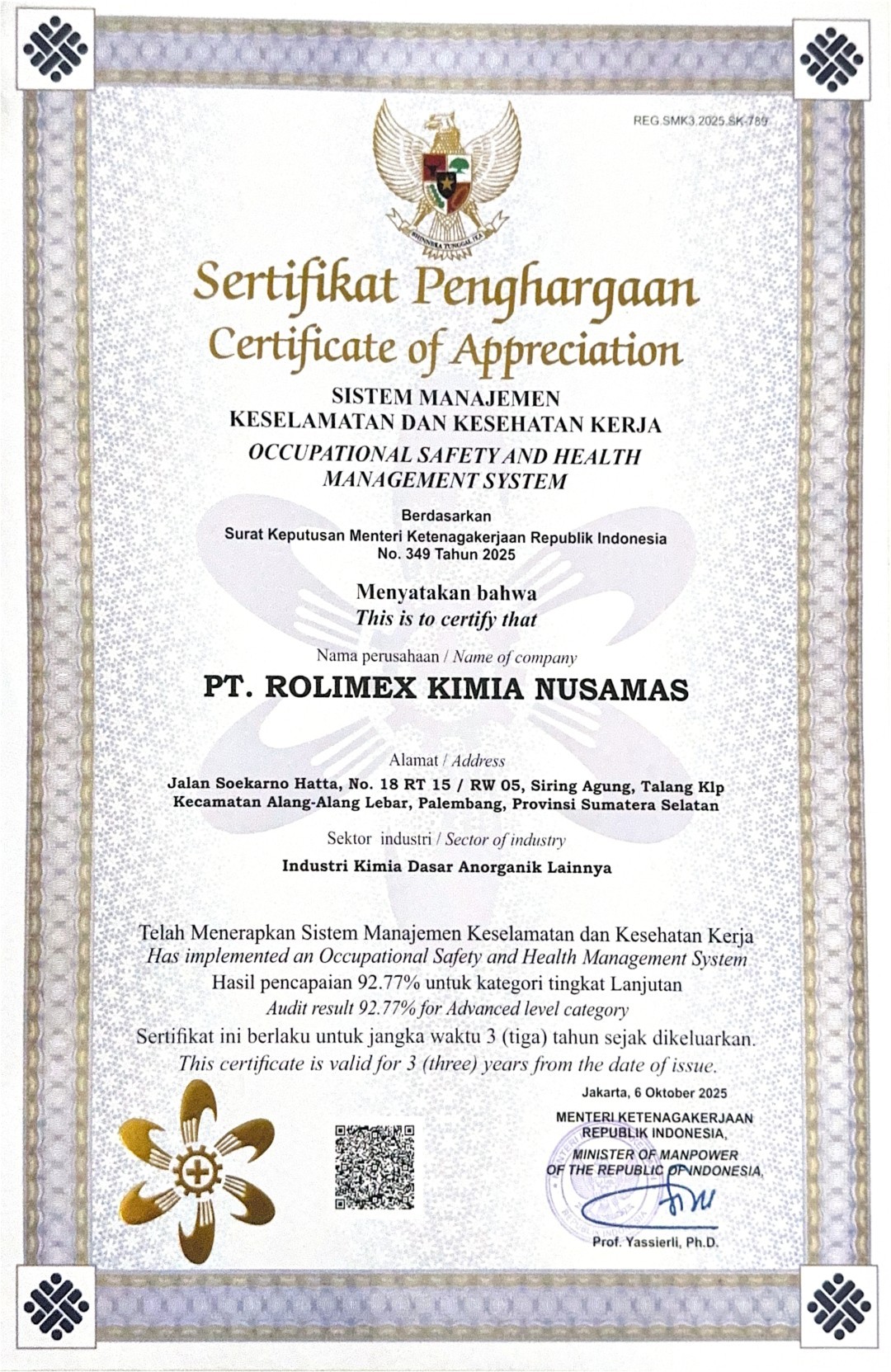PT Rolimex Kimia Nusamas has been operating since 1947. Our company operates to manufacture, market and provide logistical and distribution services for fertilizers, pesticides, general chemical, and specialty chemicals.